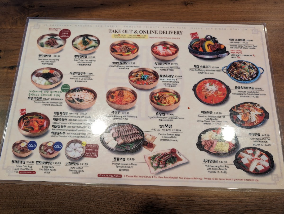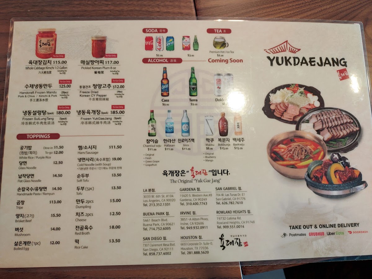 Yuk Dae Jang Rowland Heights - 육대장 로렌하이츠 Menu